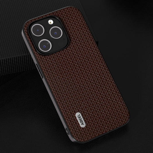 For iPhone 15 Pro ABEEL Genuine Leather Silky Soft Black Edge Phone Case(Coffee)