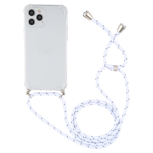 For iPhone 15 Pro Four-Corner Shockproof Transparent TPU Case with Lanyard(White Grey)