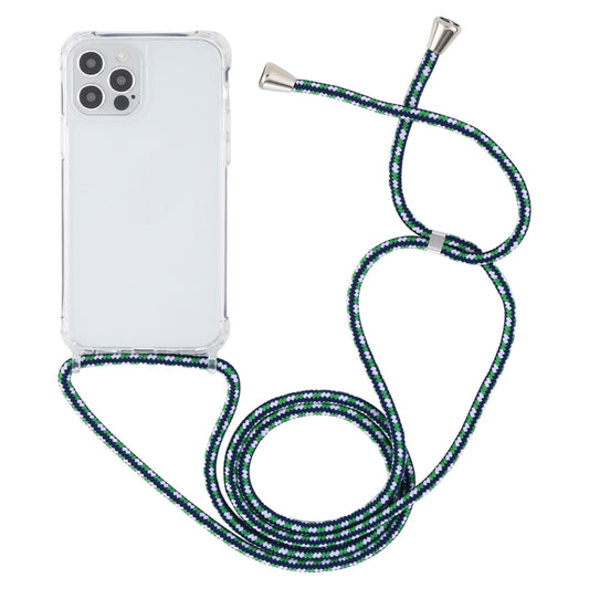 For iPhone 15 Pro Four-Corner Shockproof Transparent TPU Case with Lanyard(Green Blue White)
