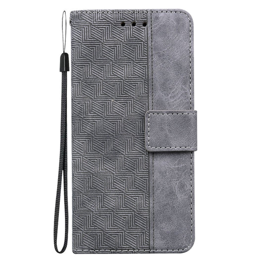 For iPhone 15 Pro Geometric Embossed Leather Phone Case(Grey)