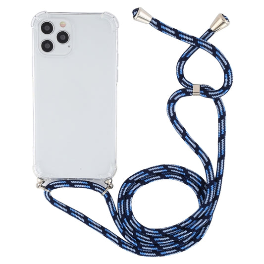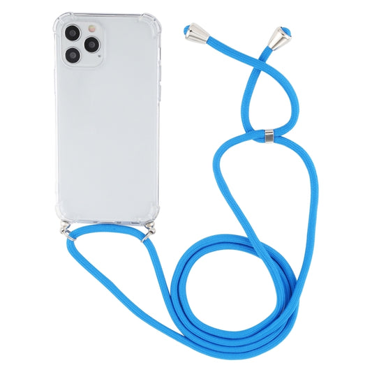 For iPhone 15 Pro Four-Corner Shockproof Transparent TPU Case with Lanyard(Blue)