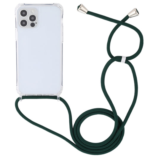 For iPhone 15 Pro Transparent Acrylic Airbag Shockproof Phone Protective Case with Lanyard(Dark Green)