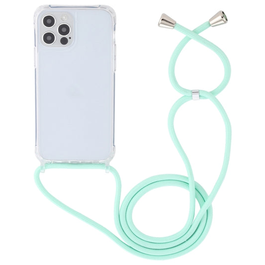 For iPhone 15 Pro Transparent Acrylic Airbag Shockproof Phone Protective Case with Lanyard(Mint Green)