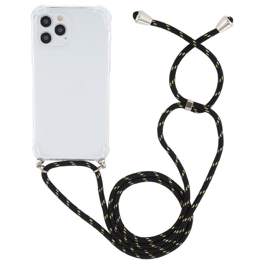 For iPhone 15 Pro Four-Corner Shockproof Transparent TPU Case with Lanyard(Black Gold)