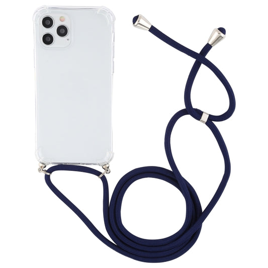 For iPhone 15 Pro Four-Corner Shockproof Transparent TPU Case with Lanyard(Dark Blue)