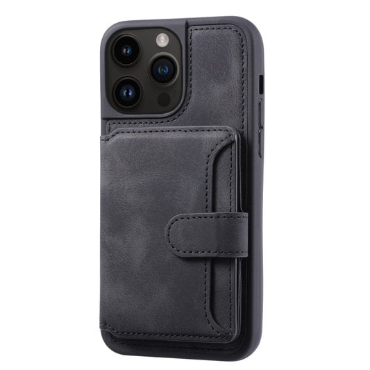 For iPhone 15 Pro Skin Feel Dream RFID Anti-theft PU Card Bag Phone Case(Black)