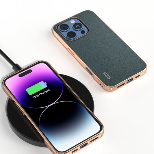For iPhone 16 Pro ABEEL Electroplated Frame Genuine Leather Elegant Phone Case(Green)