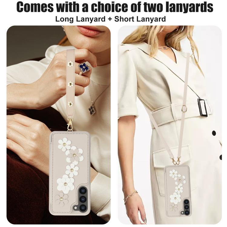 Crossbody Flower Pattern Leather Phone Case, For Samsung Galaxy S26+ 5G, For Samsung Galaxy S26 Ultra 5G, For Samsung Galaxy S26 5G, For Samsung Galaxy S25 Edge 5G