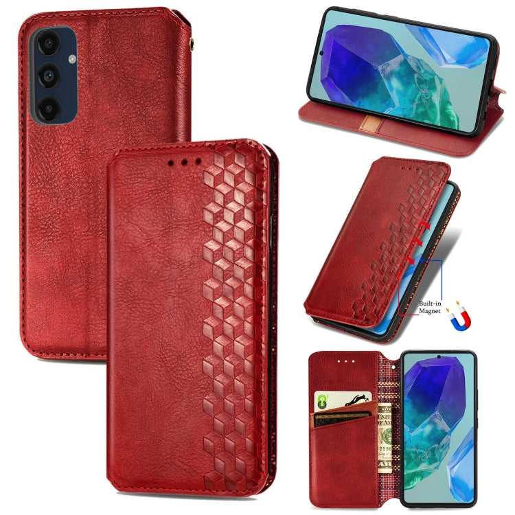 Cubic Grid Pressed Magnetic Leather Phone Case, For Samsung Galaxy S25+ 5G, For Samsung Galaxy S25 Ultra 5G, For Samsung Galaxy M55, For Samsung Galaxy A25 5G