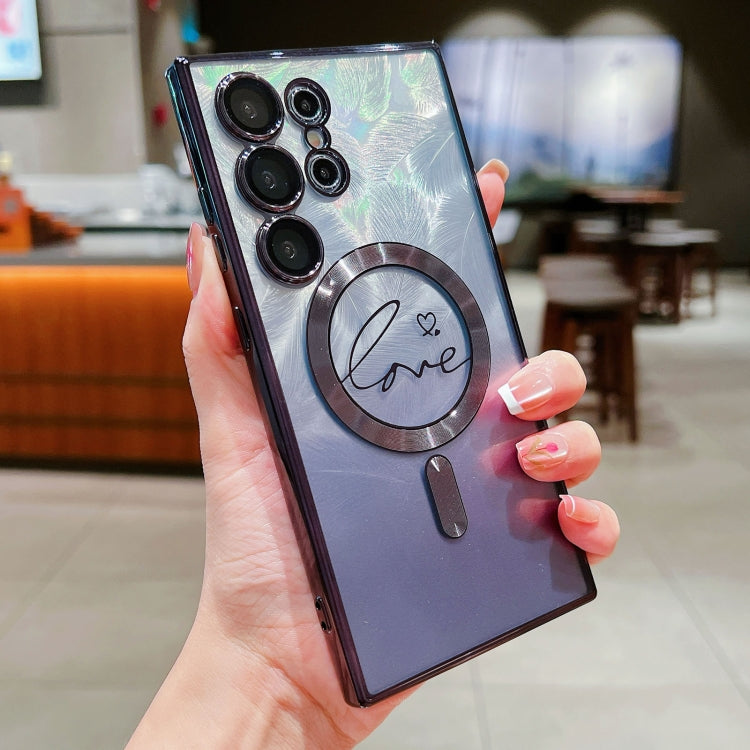 Dual-Love Feather Gradient Glitter MagSafe TPU Phone Case, For Samsung Galaxy S25 5G, For Samsung Galaxy S25+ 5G, For Samsung Galaxy S25 Ultra 5G, For Samsung Galaxy S24 Ultra 5G