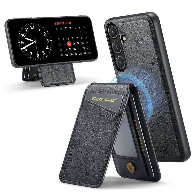 Fierre Shann Cowhide Vertical Flip Magnetic Card Holder Phone Case, For Samsung Galaxy S26+ 5G, For Samsung Galaxy S26 Ultra 5G, For Samsung Galaxy S26 5G, For Samsung Galaxy S25 5G