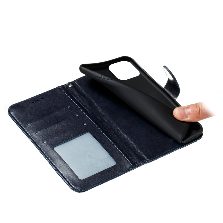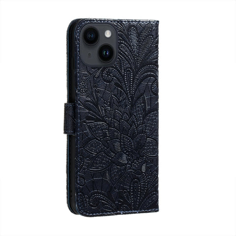 For iPhone 14 / 13 Lace Flower Embossing Flip Leather Phone Case(Dark Blue)