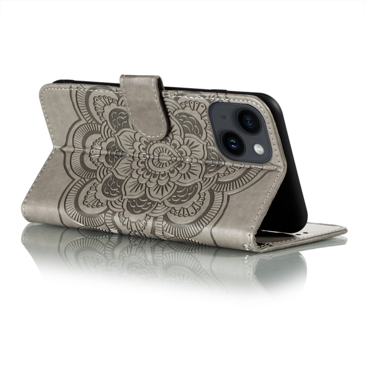 For iPhone 14 / 13 Sun Mandala Embossing Leather Phone Case(Grey)