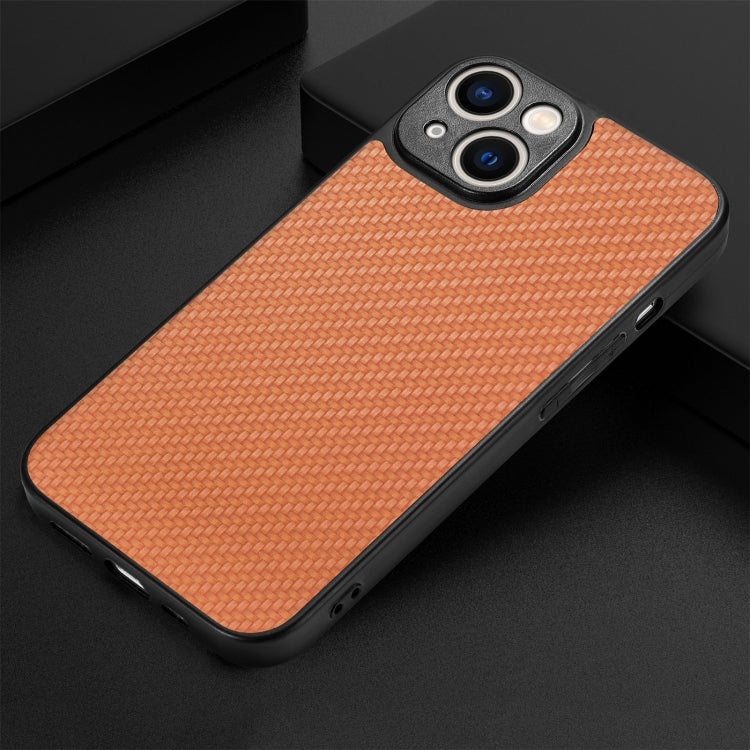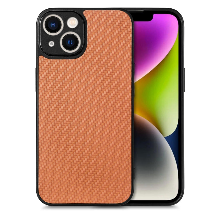 For iPhone 14 Carbon Fiber Texture Leather Back Cover Phone Case(Brown)
