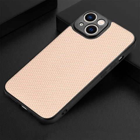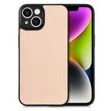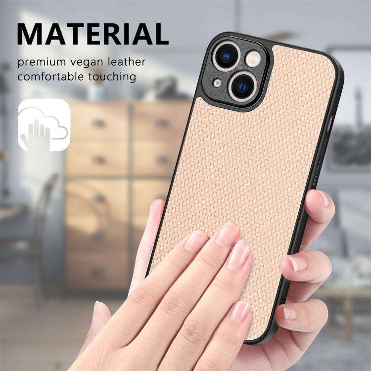 For iPhone 14 Carbon Fiber Texture Leather Back Cover Phone Case(Khaki)