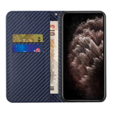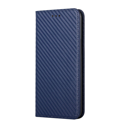 For iPhone 14 Carbon Fiber Texture Magnetic Flip Leather Phone Case (Blue)