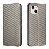 For iPhone 14 Carbon Fiber Texture Magnetic Flip Leather Phone Case (Grey)