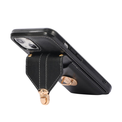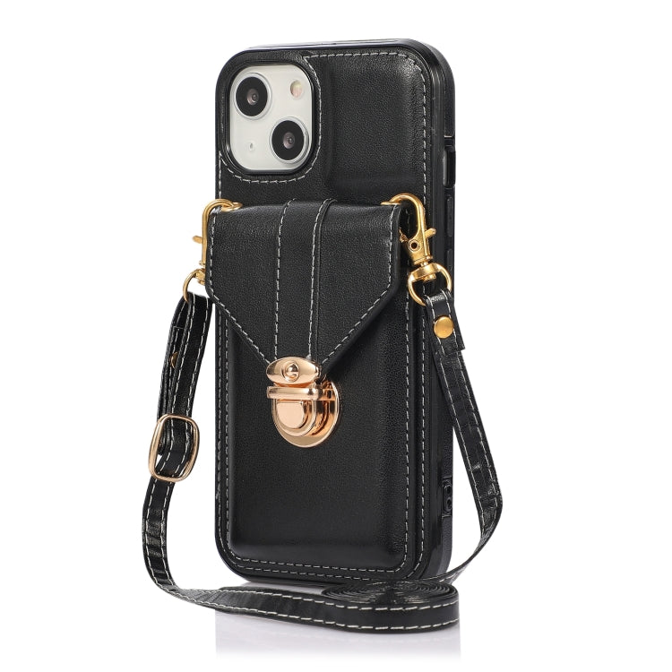 For iPhone 14 Card Slot Lanyard Phone Case (Black)