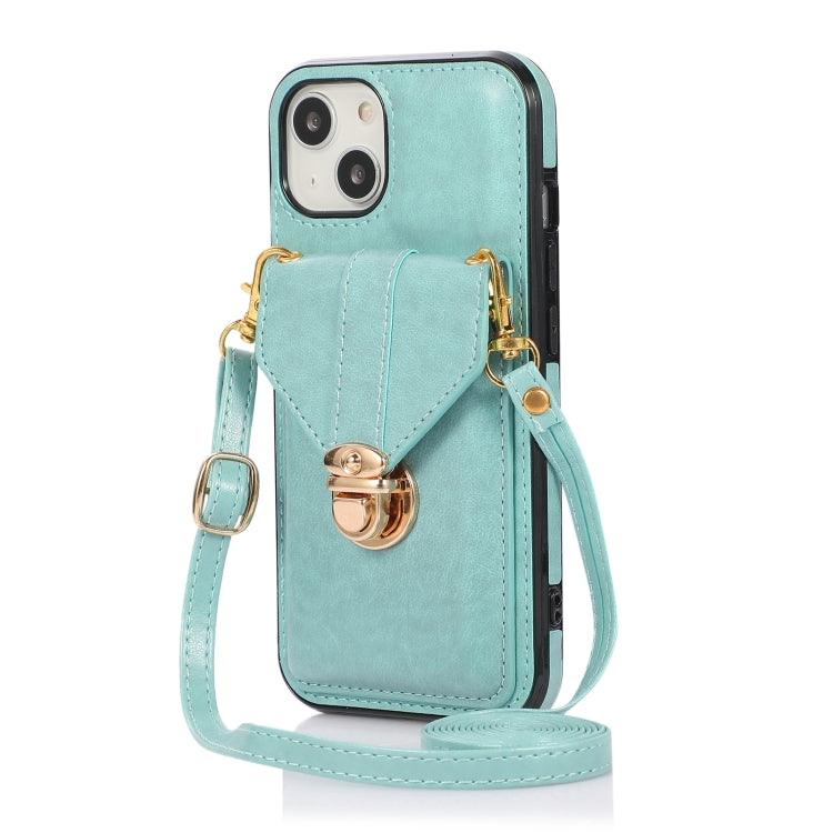 For iPhone 14 Card Slot Lanyard Phone Case (Green)