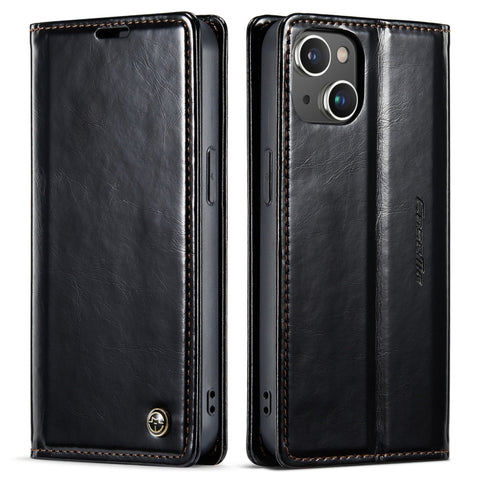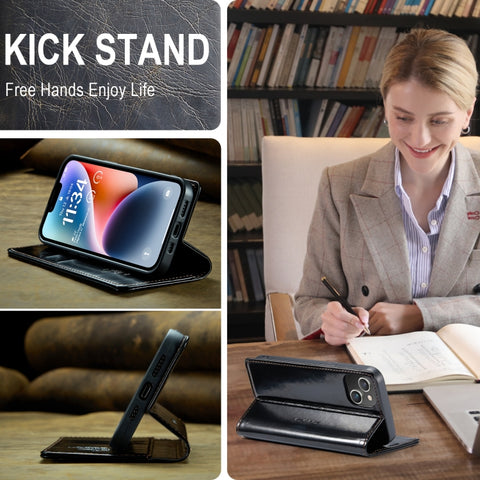 For iPhone 14 CaseMe 003 Crazy Horse Texture Leather Phone Case(Black)