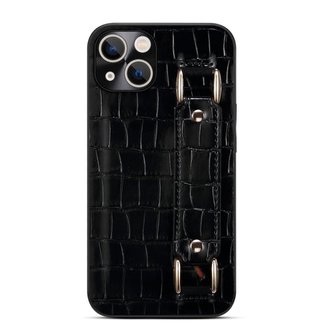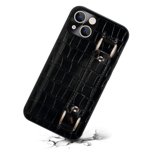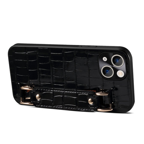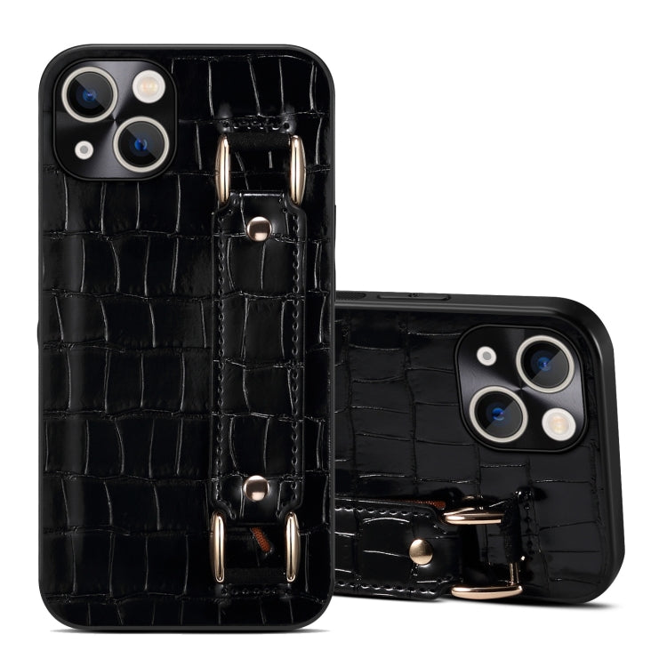 For iPhone 14 Crocodile Wristband Wallet Leather Back Cover Phone Case(Black)