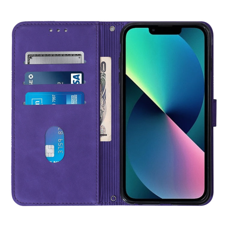 For iPhone 14 Crossbody 3D Embossed Flip Leather Phone Case (Purple)