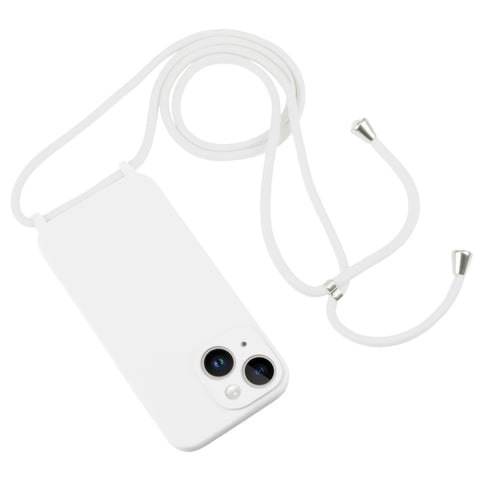 For iPhone 14 Crossbody Lanyard Liquid Silicone Case(White)