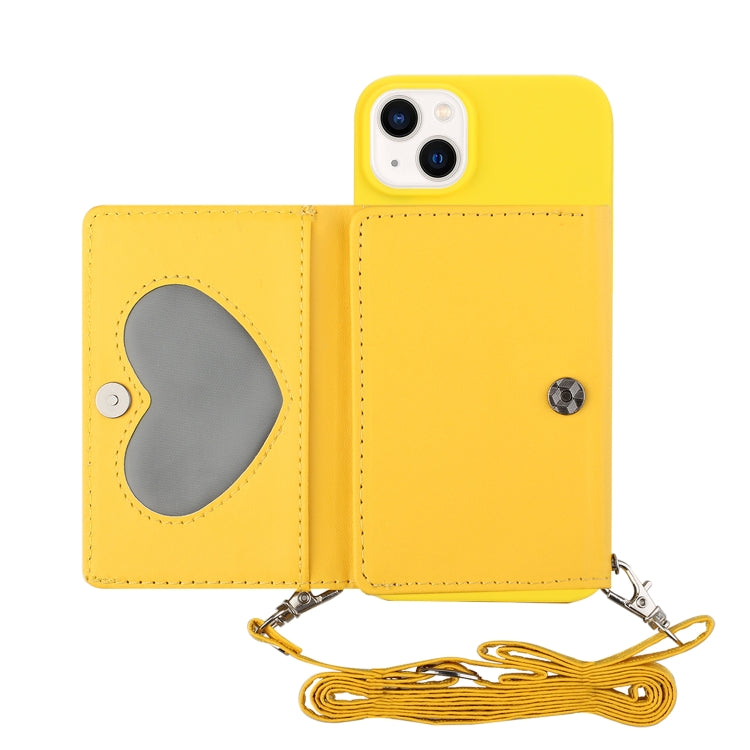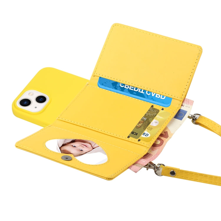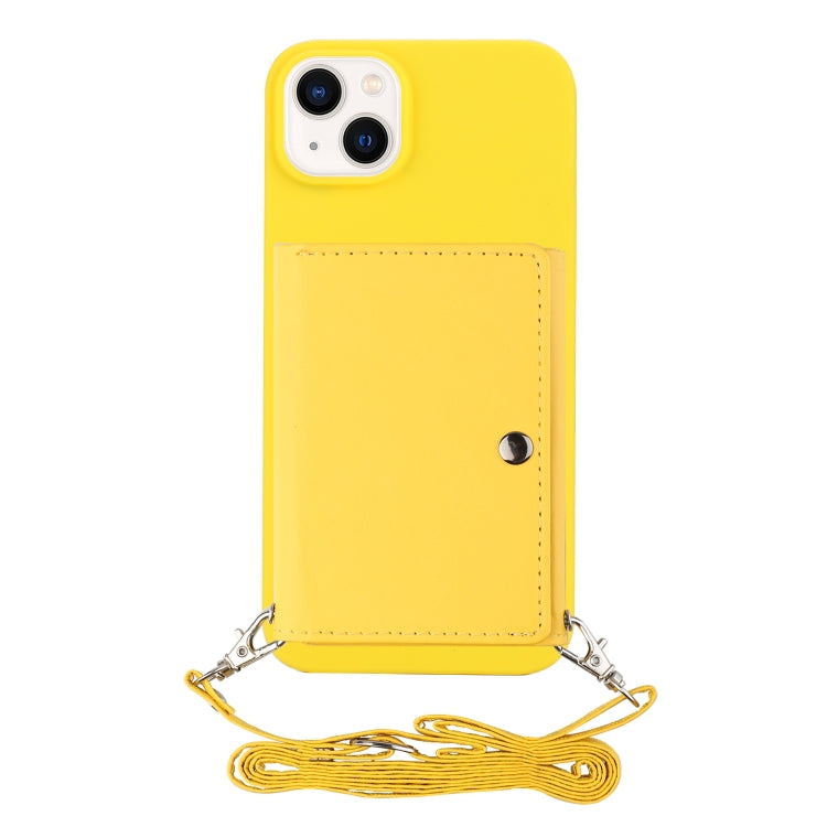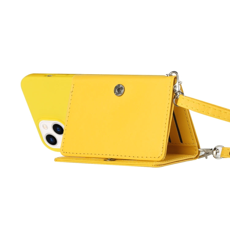For iPhone 14 Crossbody Lanyard Wallet Card Bag Phone Case(Yellow)