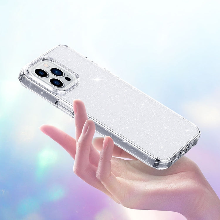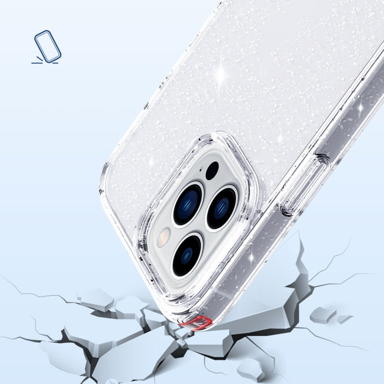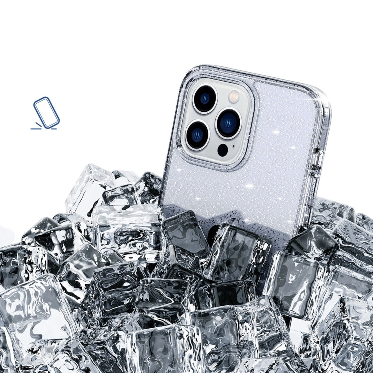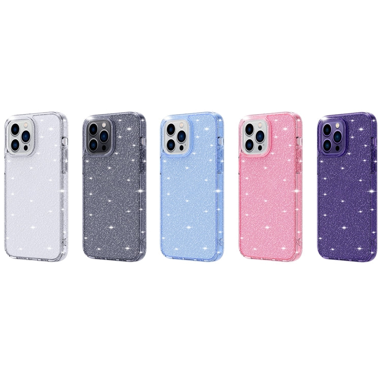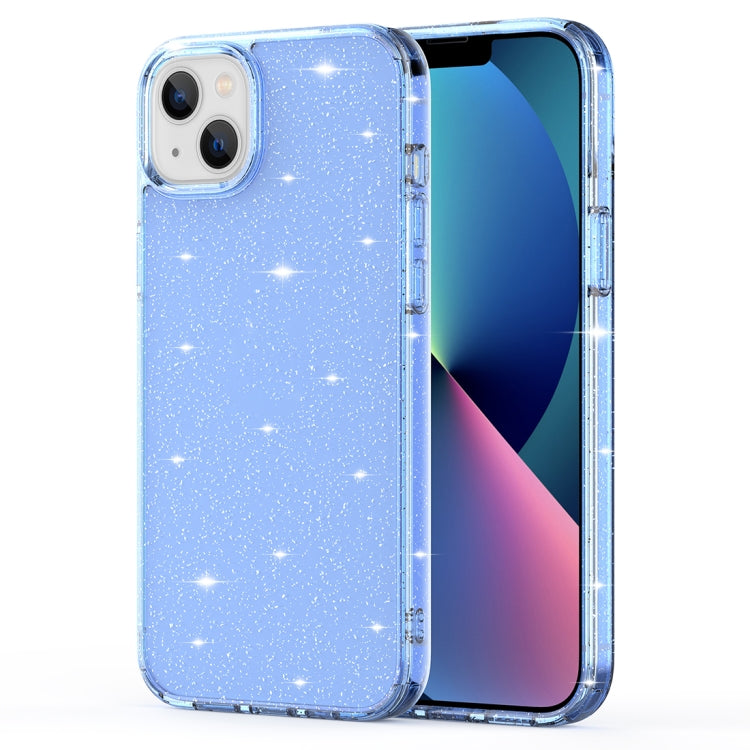 For iPhone 14 Crystal Clear Glitter Airbag Phone Case (Transparent Sierra Blue)