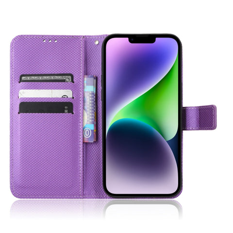 For iPhone 14 Diamond Texture Leather Phone Case(Purple)