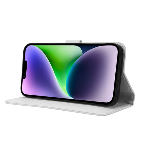 For iPhone 14 Diamond Texture Leather Phone Case(White)