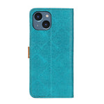 For iPhone 14 European Floral Embossed Copper Buckle Horizontal Flip PU Leather Phone Case (Blue)