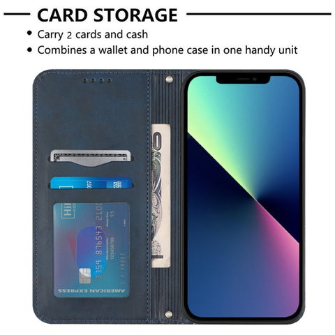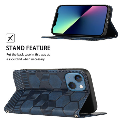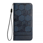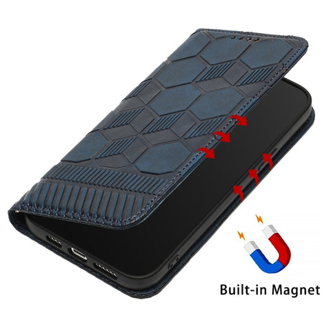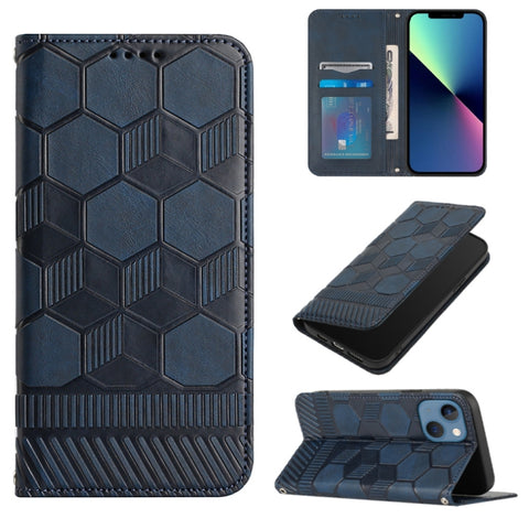 For iPhone 14 Football Texture Magnetic Leather Flip Phone Case (Dark Blue)
