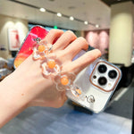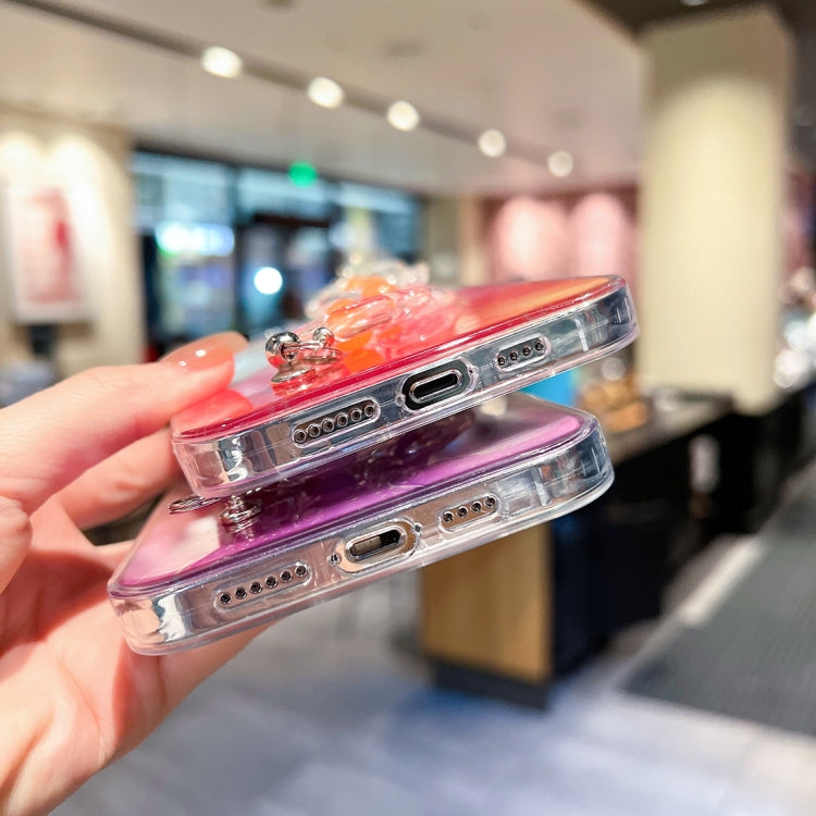 For iPhone 14 Gold Halo Marble Pattern Case with Flower Bracelet (Red)