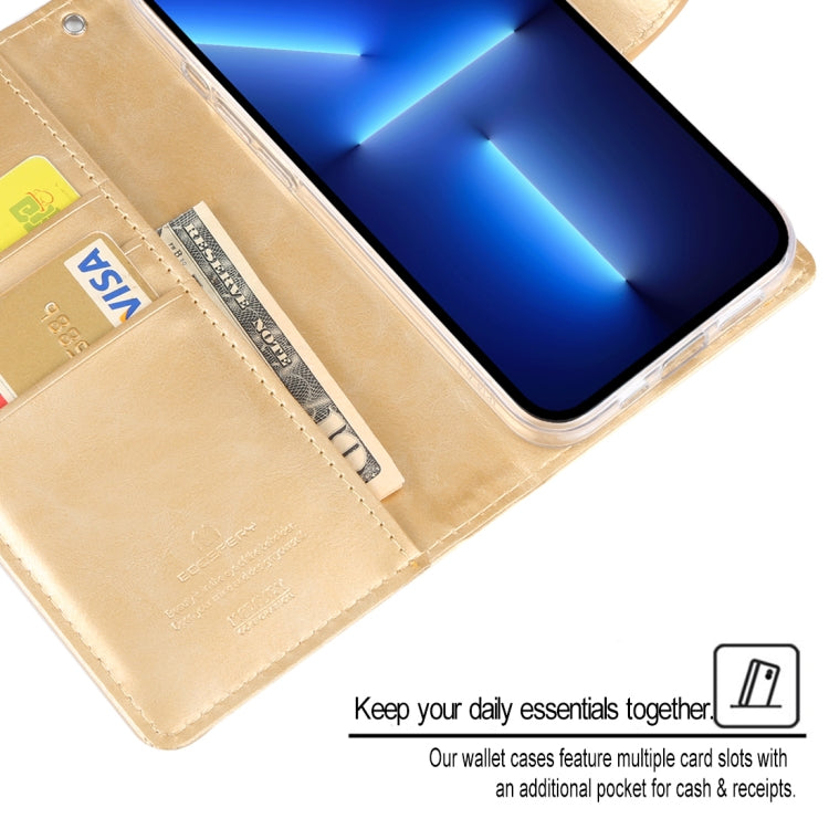 For iPhone 14 GOOSPERY BLUE MOON Crazy Horse Texture Leather Case (Gold)
