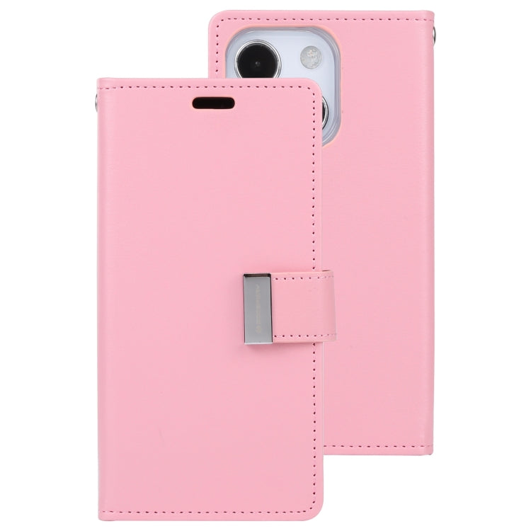For iPhone 14 GOOSPERY RICH DIARY Crazy Horse Texture Leather Case (Pink)