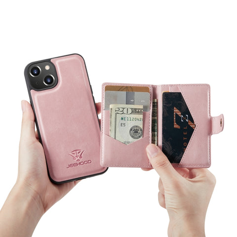 For iPhone 14 JEEHOOD Retro Magnetic Detachable Leather Phone Case (Pink)