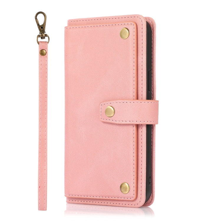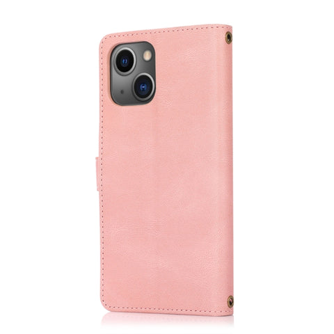 For iPhone 14 Lanyard Leather Phone Case (Pink)