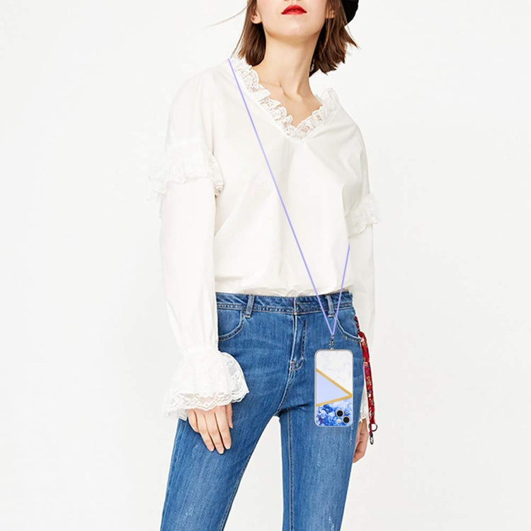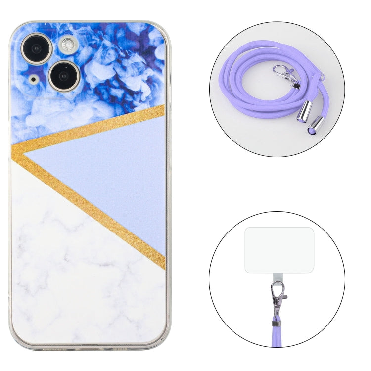For iPhone 14 Lanyard Stitching Marble TPU Case (Purple)