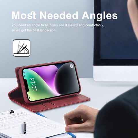 For iPhone 14 LC.IMEEKE RFID Anti-theft Leather Phone Case(Red)