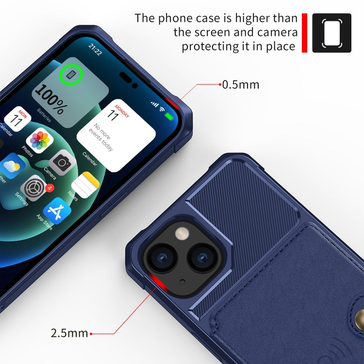 For iPhone 14 Magnetic Wallet Card Bag Leather Phone Case (Navy Blue)
