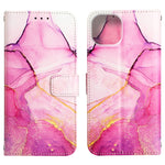 For iPhone 14 Marble Pattern Flip Leather Phone Case (Pink Purple Gold LS001)