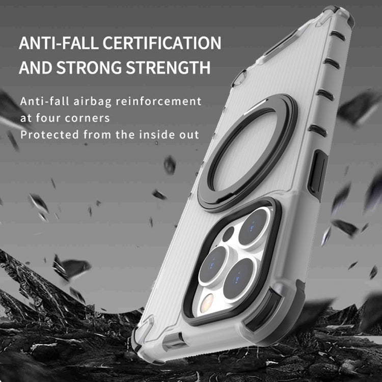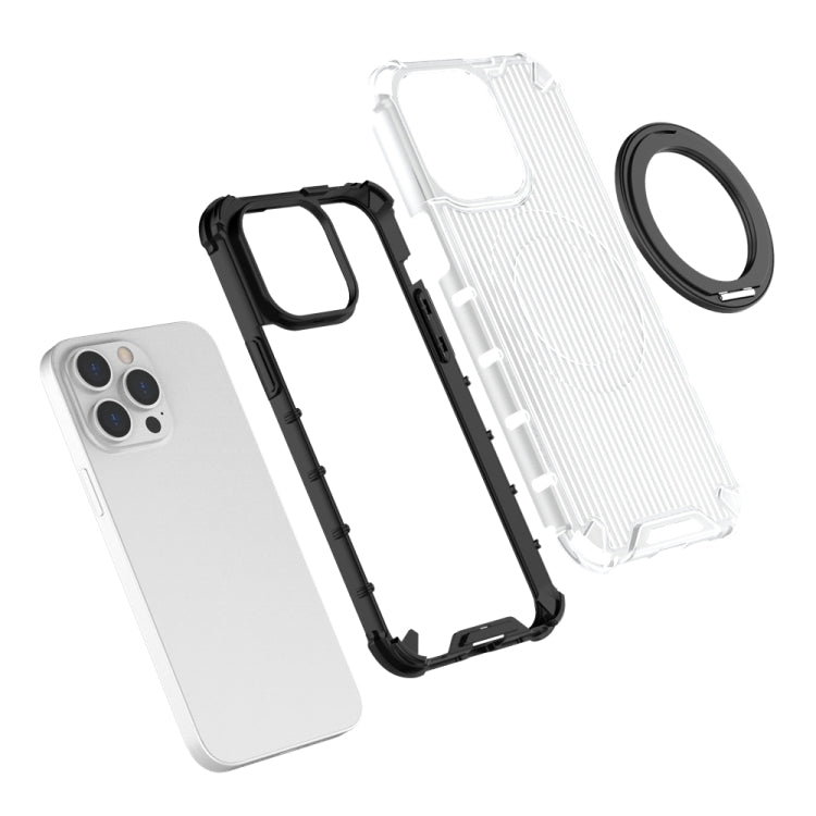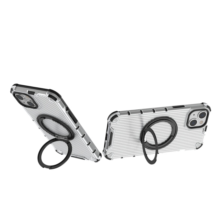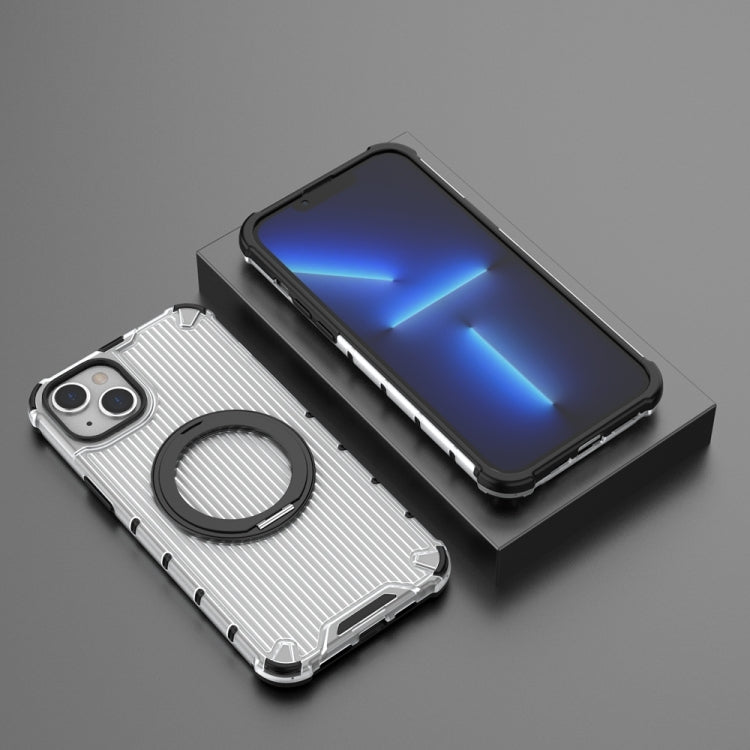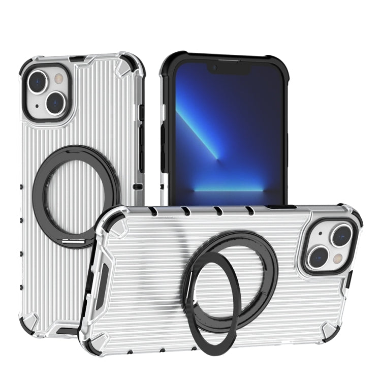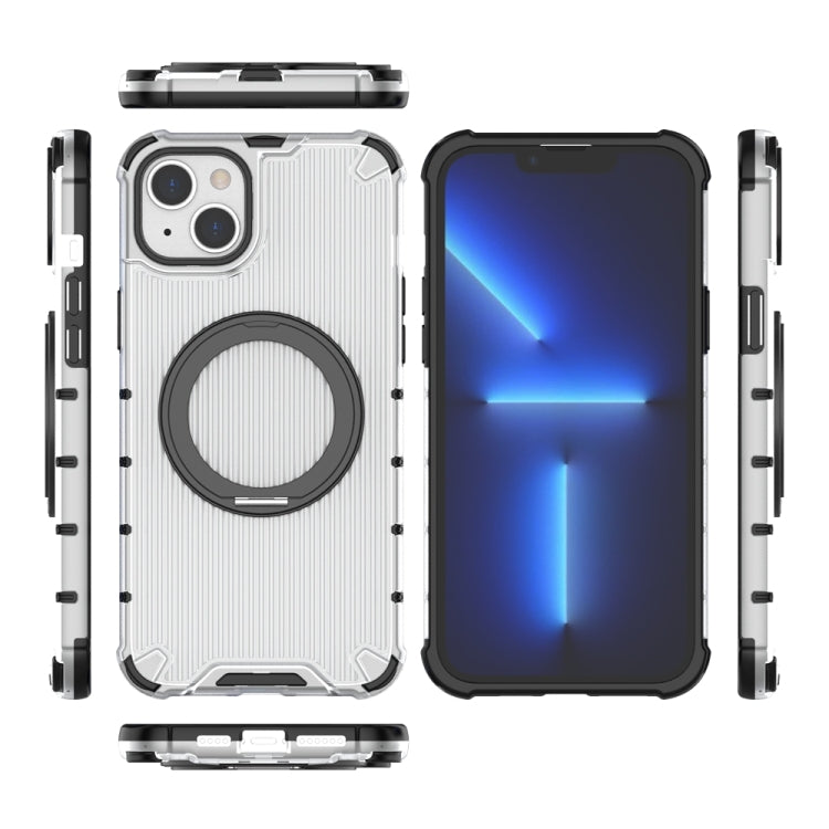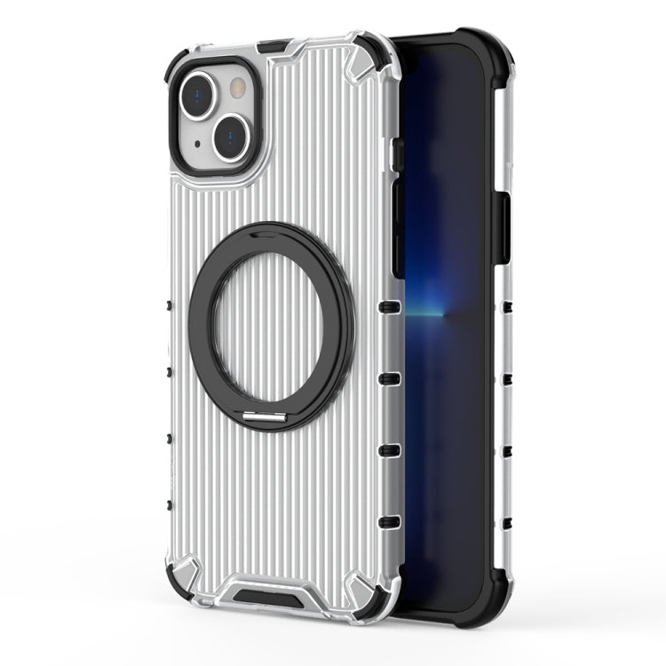 For iPhone 14 Plus Grating 360 Degree Rotating Holder Shockproof Phone Case(Transparent)