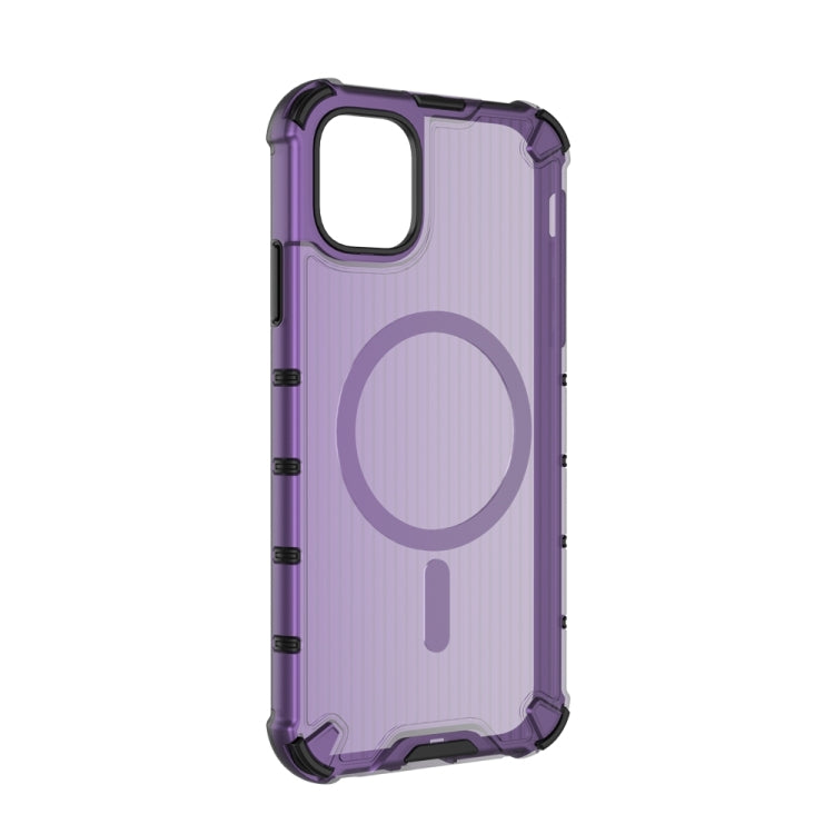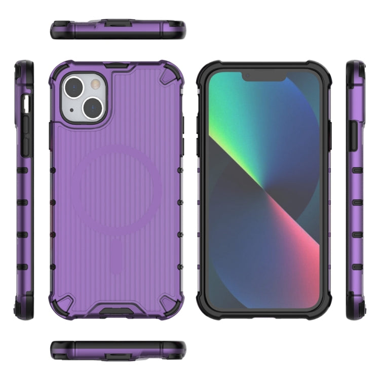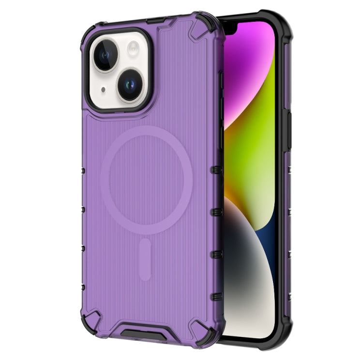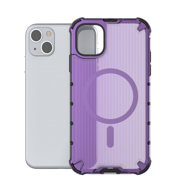 For iPhone 14 Plus Grating Airbag Shockproof MagSafe Frosted Phone Case(Purple)
