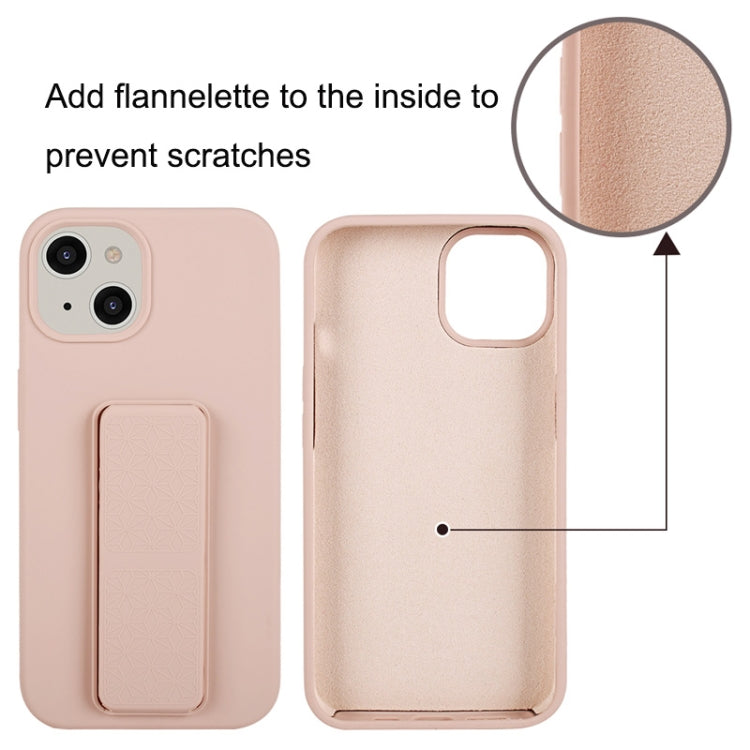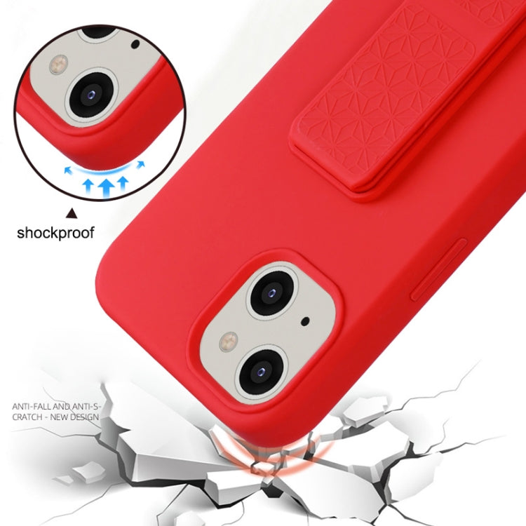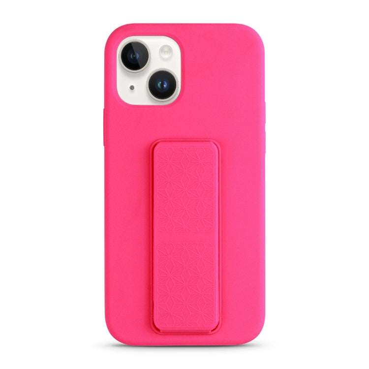 For iPhone 14 Plus Liquid Silicone Holder Phone Case(Brilliant Pink)