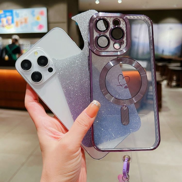 For iPhone 14 Plus Loves Gradient Glitter Bracelets Carbon Fiber Magsafe TPU Phone Case(Blue)