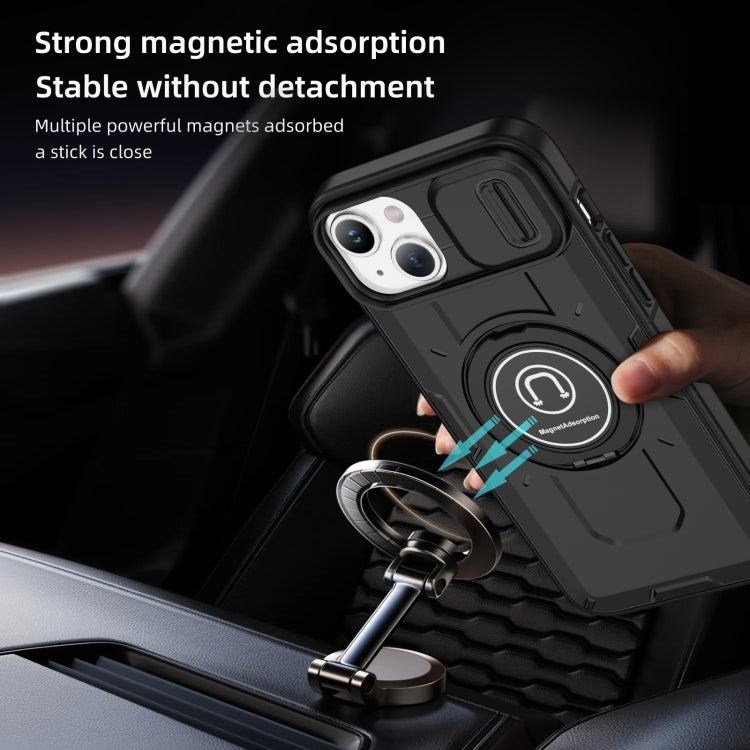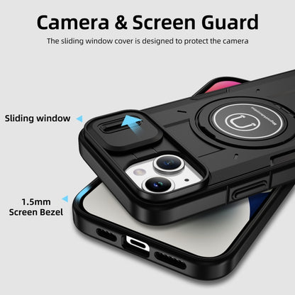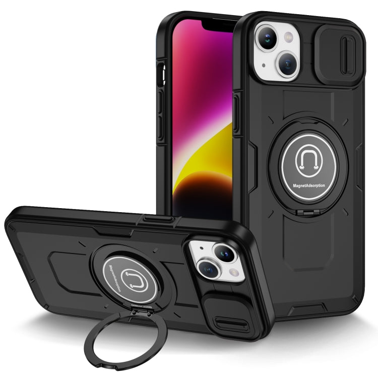 For iPhone 14 Plus Sliding Camshield TPU Hybrid PC Magnetic Holder Phone Case(Black)