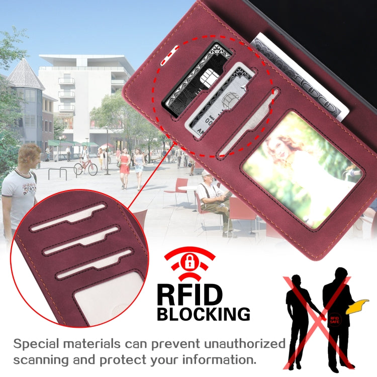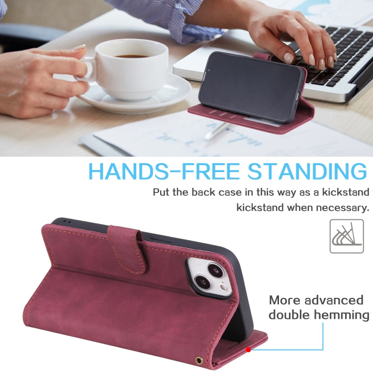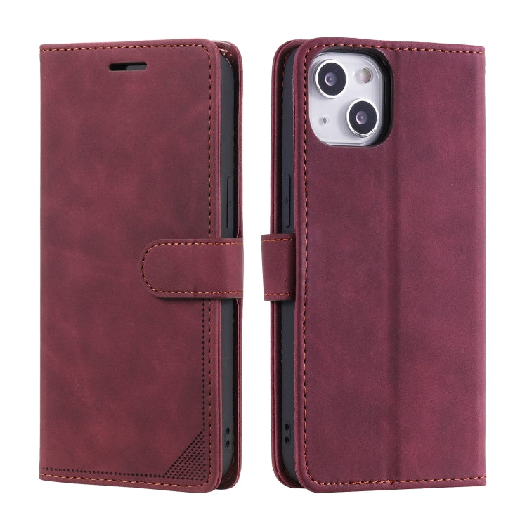 For iPhone 14 Skin Feel Anti-theft Brush Horizontal Flip Leather Phone Case(Red)