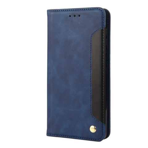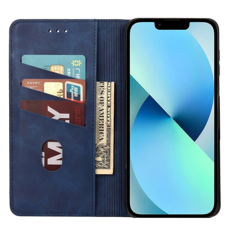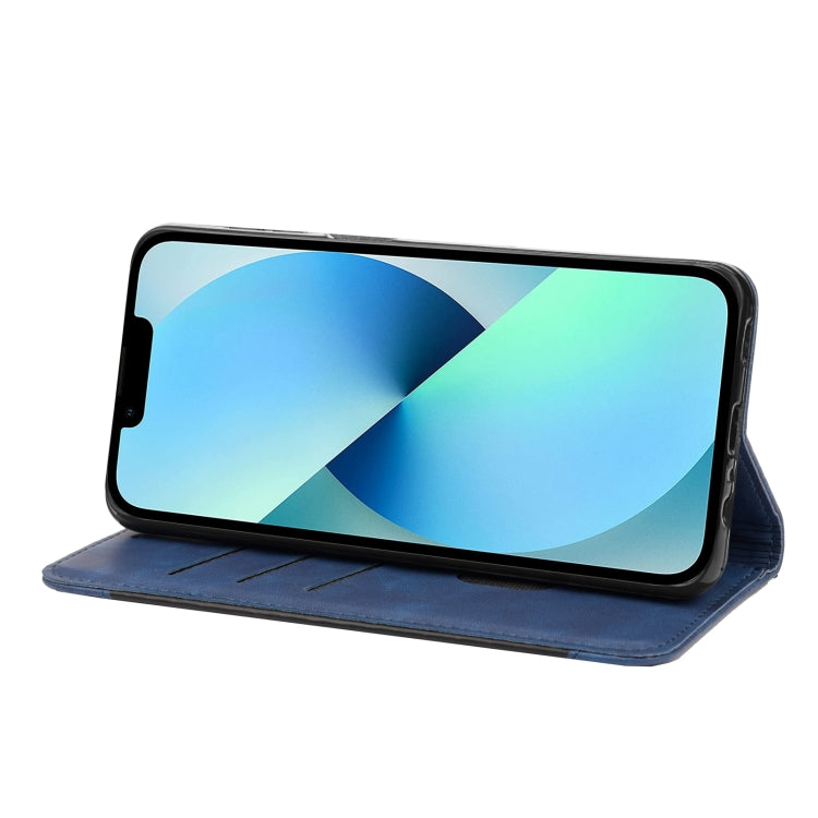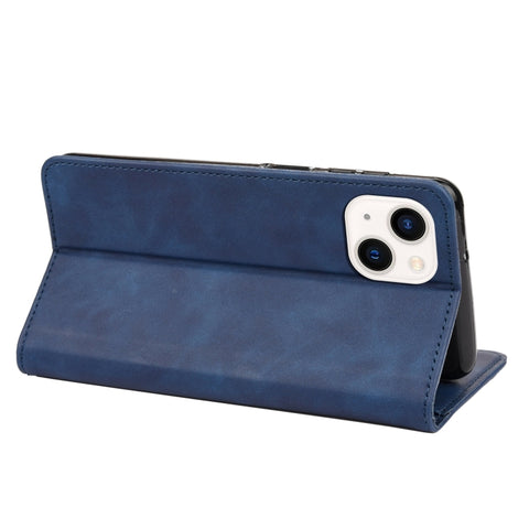 For iPhone 14 Skin Feel Splicing Leather Phone Case (Blue)