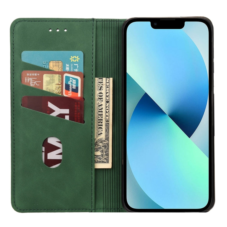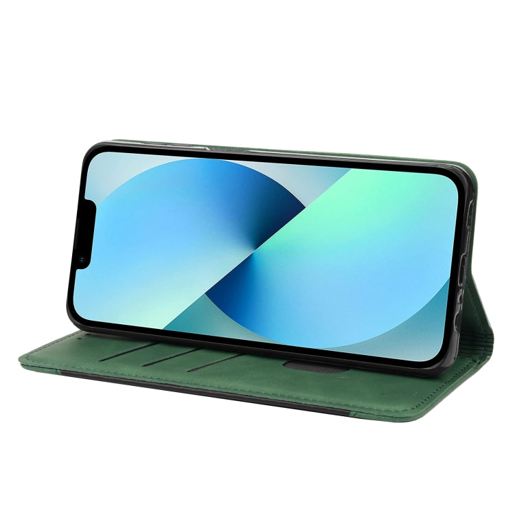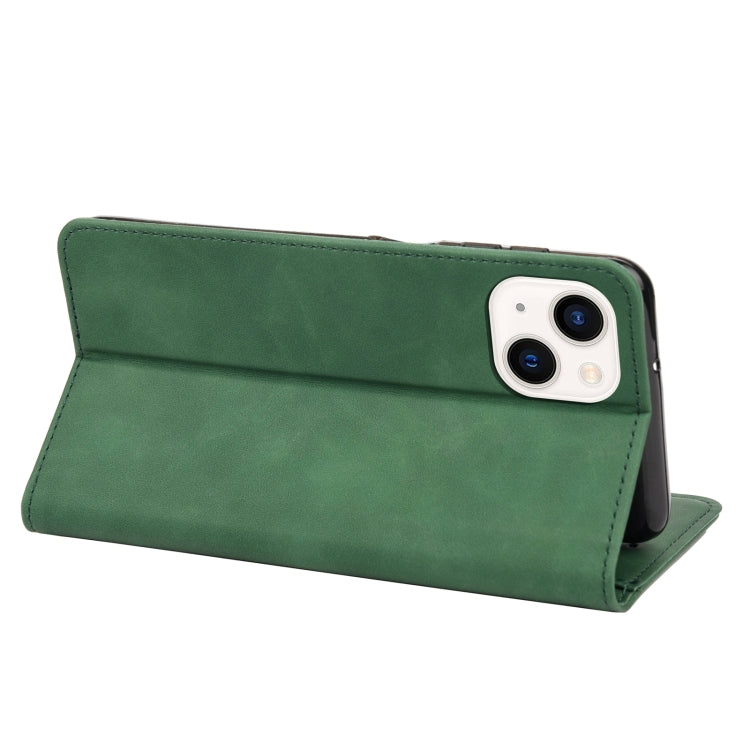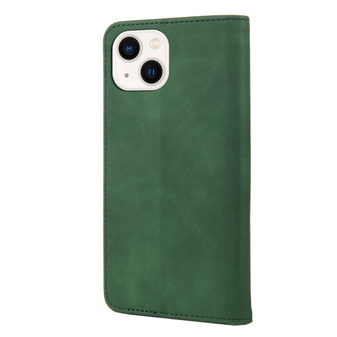 For iPhone 14 Skin Feel Splicing Leather Phone Case (Green)
